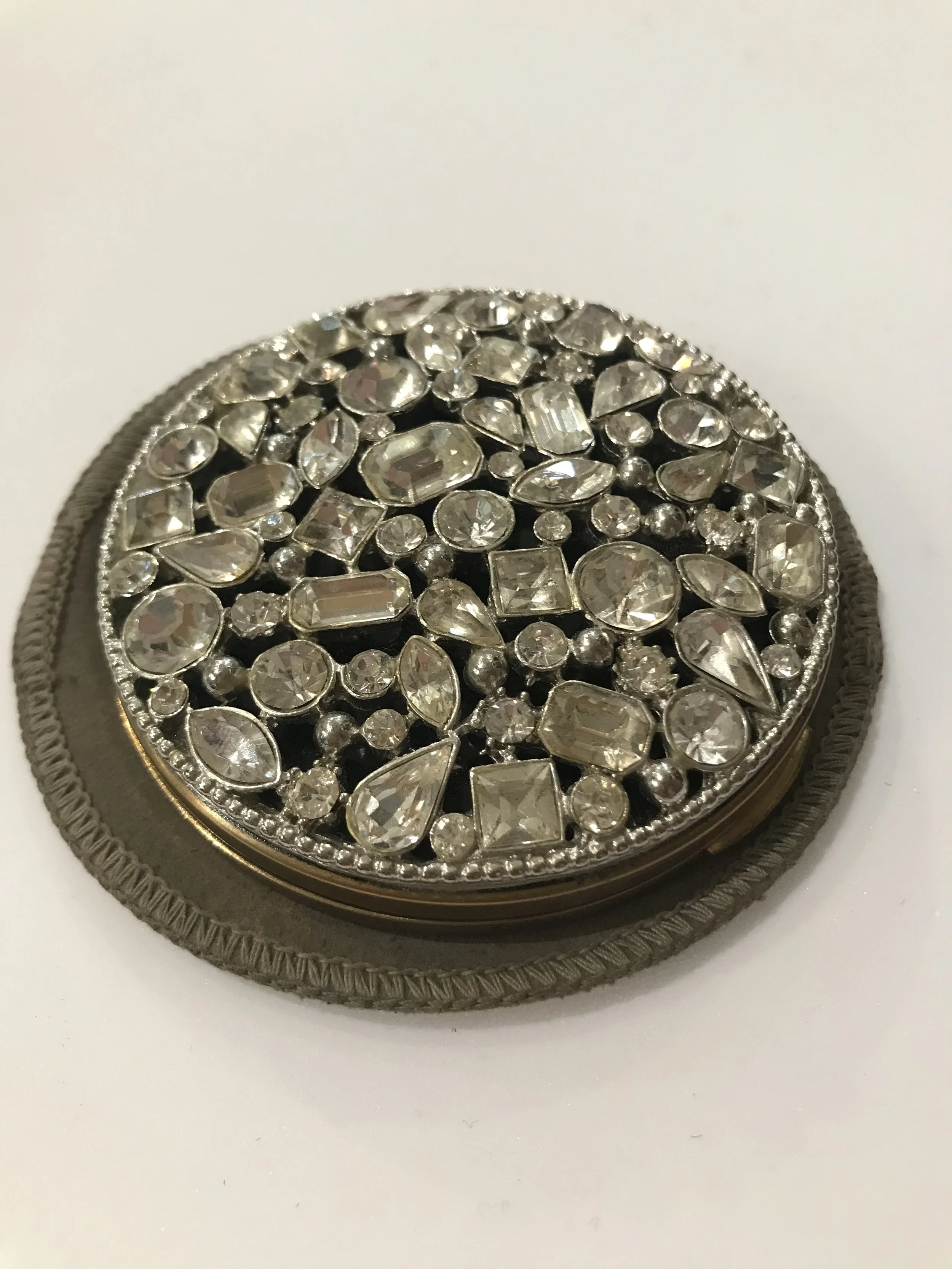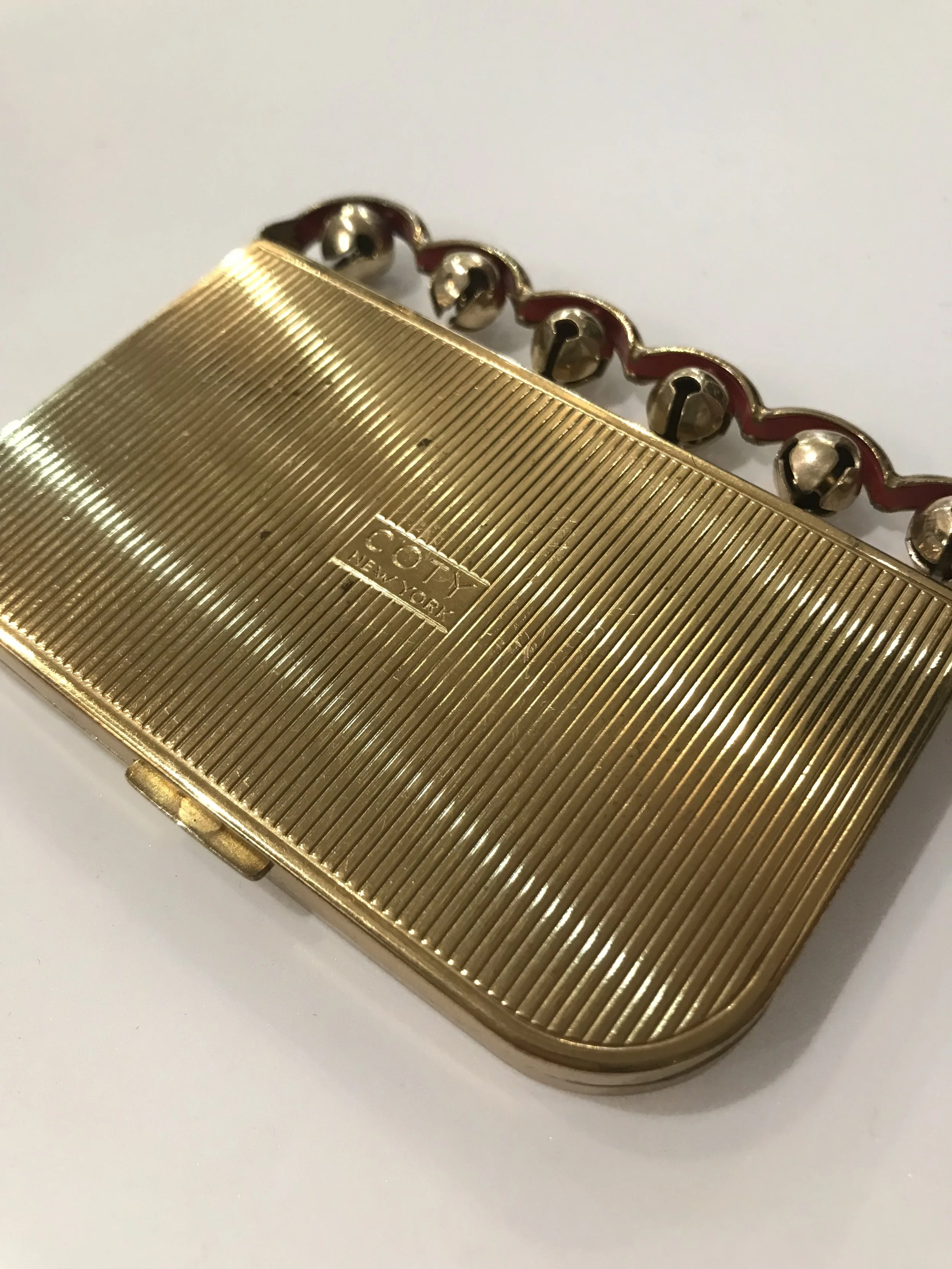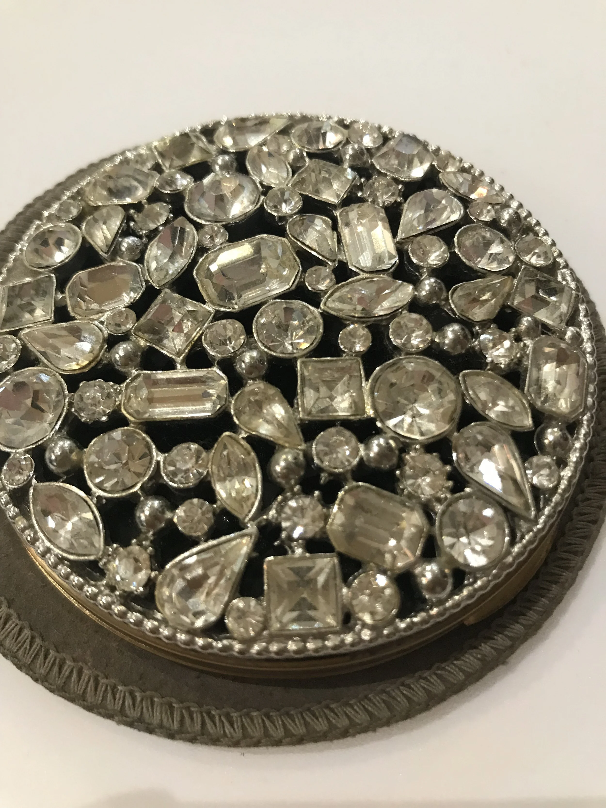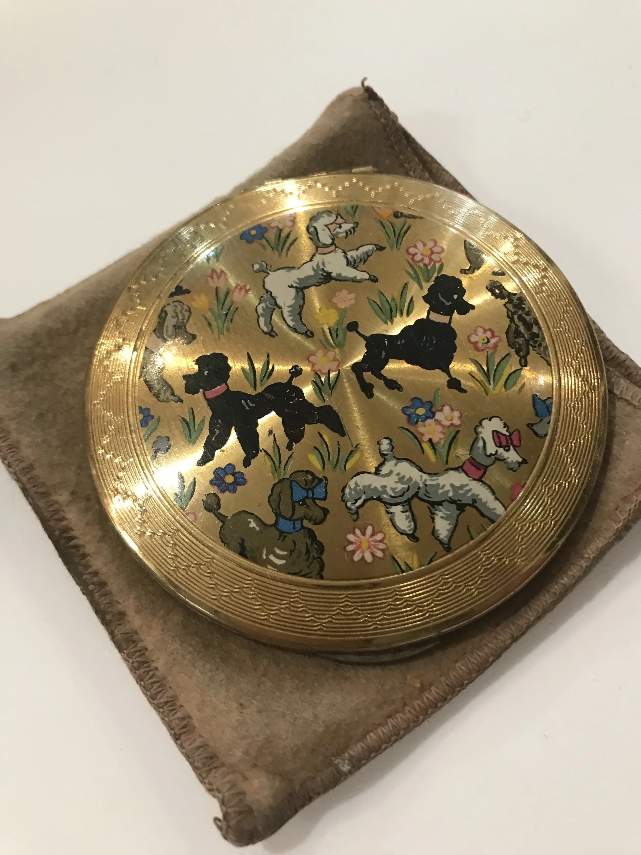 Categories: All Vintage Powder Compacts All | Vintage Powder Compacts | All Vintage Powder Compacts 1950s VOLUPTE Vintage Minaudière Compact Purse 1940/50s Novelty Gambling Dice Globe Powder Compact Sold Out 1940/50s Shagreen Powder Compact By Kigu Sold Out 1940/5s Novelty Sleigh/Jingle Bells Powder Compact By Coty Sold Out 1950s Novelty Poodle Enamelled Powder Compact by Kigu Sold Out c.1940s Novelty Hat Powder Compact By Dorothy Gray Sold Out 1950s Heavy Rhinestone Covered Powder Compact Sold Out