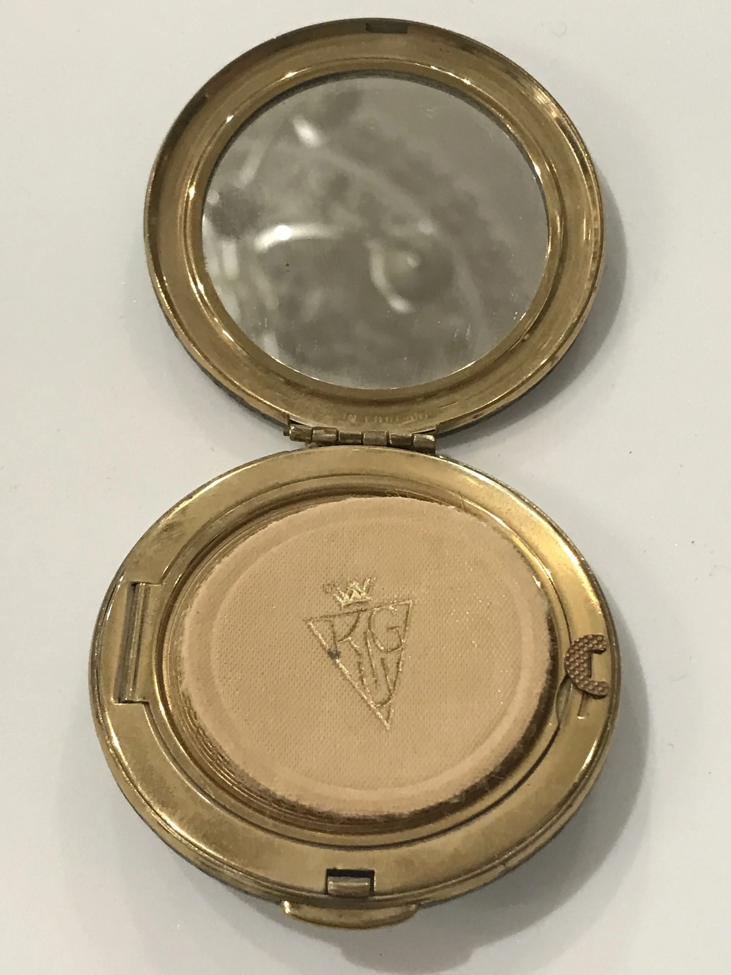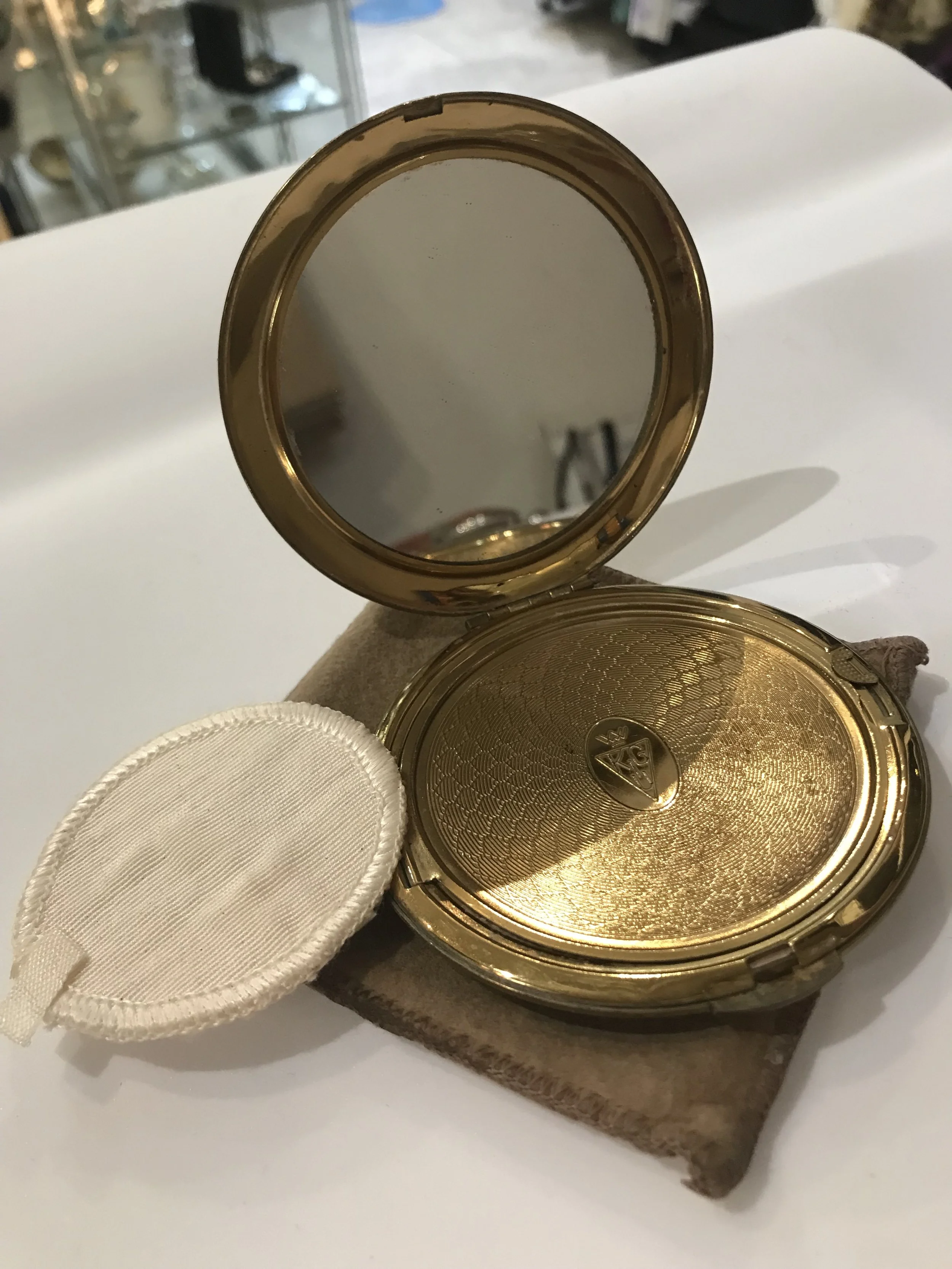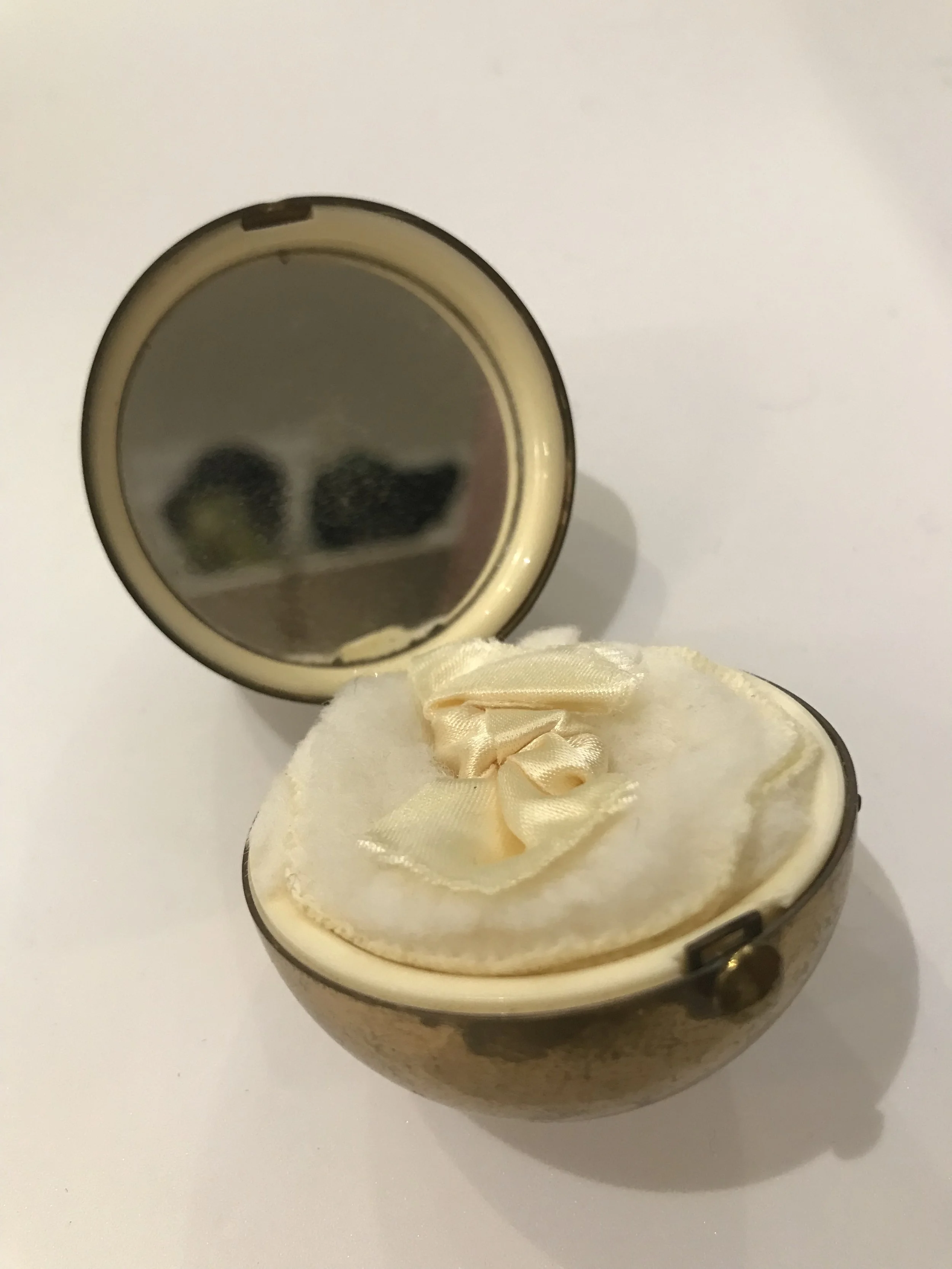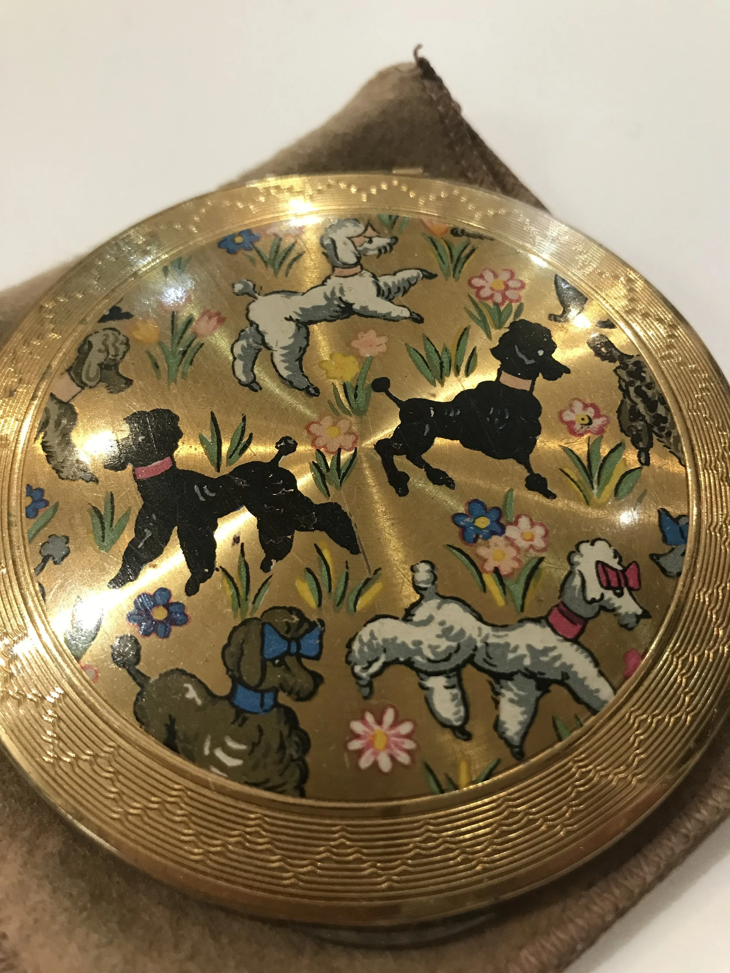 Categories: All Vintage Powder Compacts All | Vintage Powder Compacts | All Vintage Powder Compacts 1950s VOLUPTE Vintage Minaudière Compact Purse 1940/50s Novelty Gambling Dice Globe Powder Compact Sold Out 1940/50s Shagreen Powder Compact By Kigu Sold Out 1940/5s Novelty Sleigh/Jingle Bells Powder Compact By Coty Sold Out 1950s Novelty Poodle Enamelled Powder Compact by Kigu Sold Out c.1940s Novelty Hat Powder Compact By Dorothy Gray Sold Out 1950s Heavy Rhinestone Covered Powder Compact Sold Out