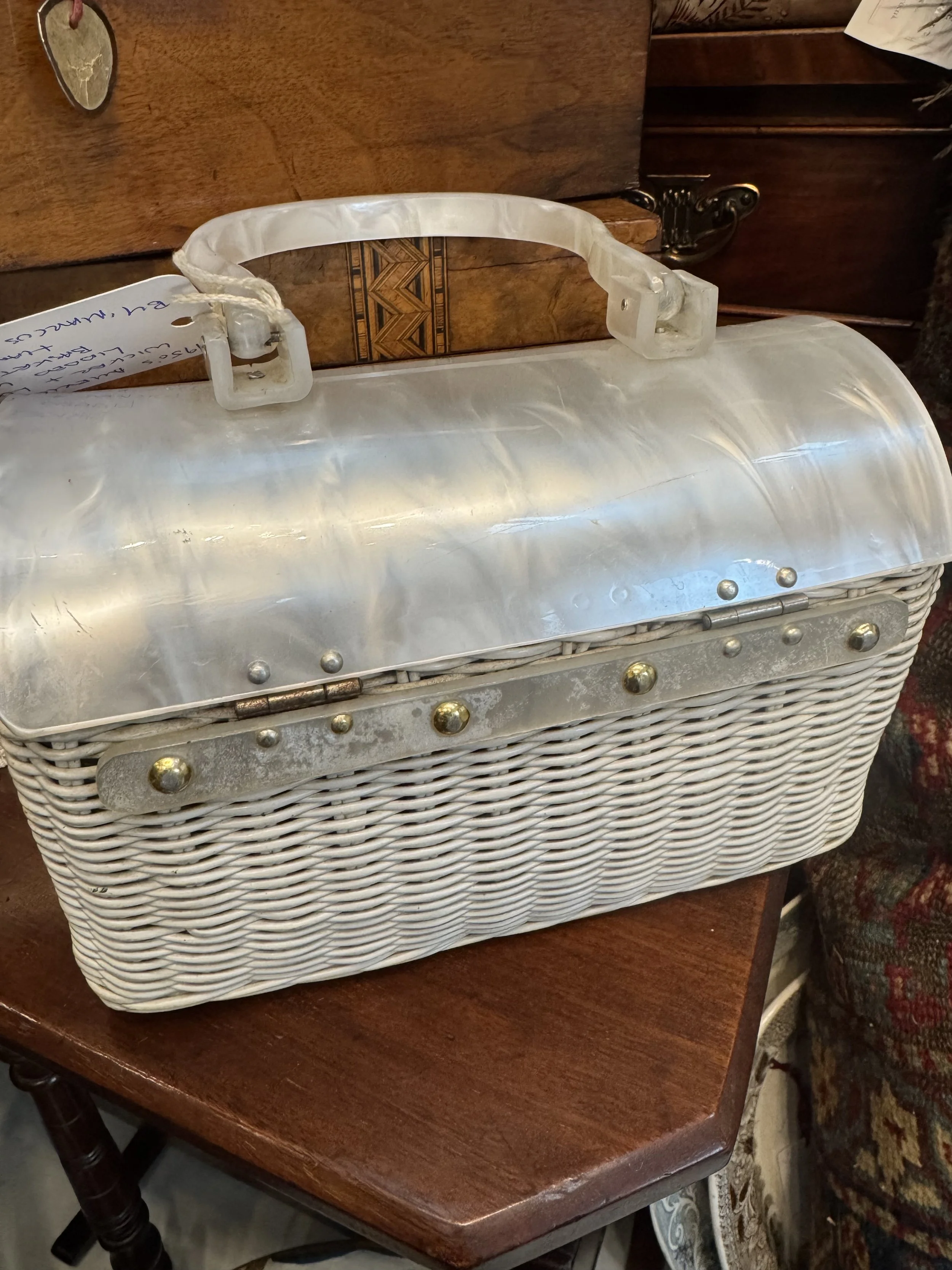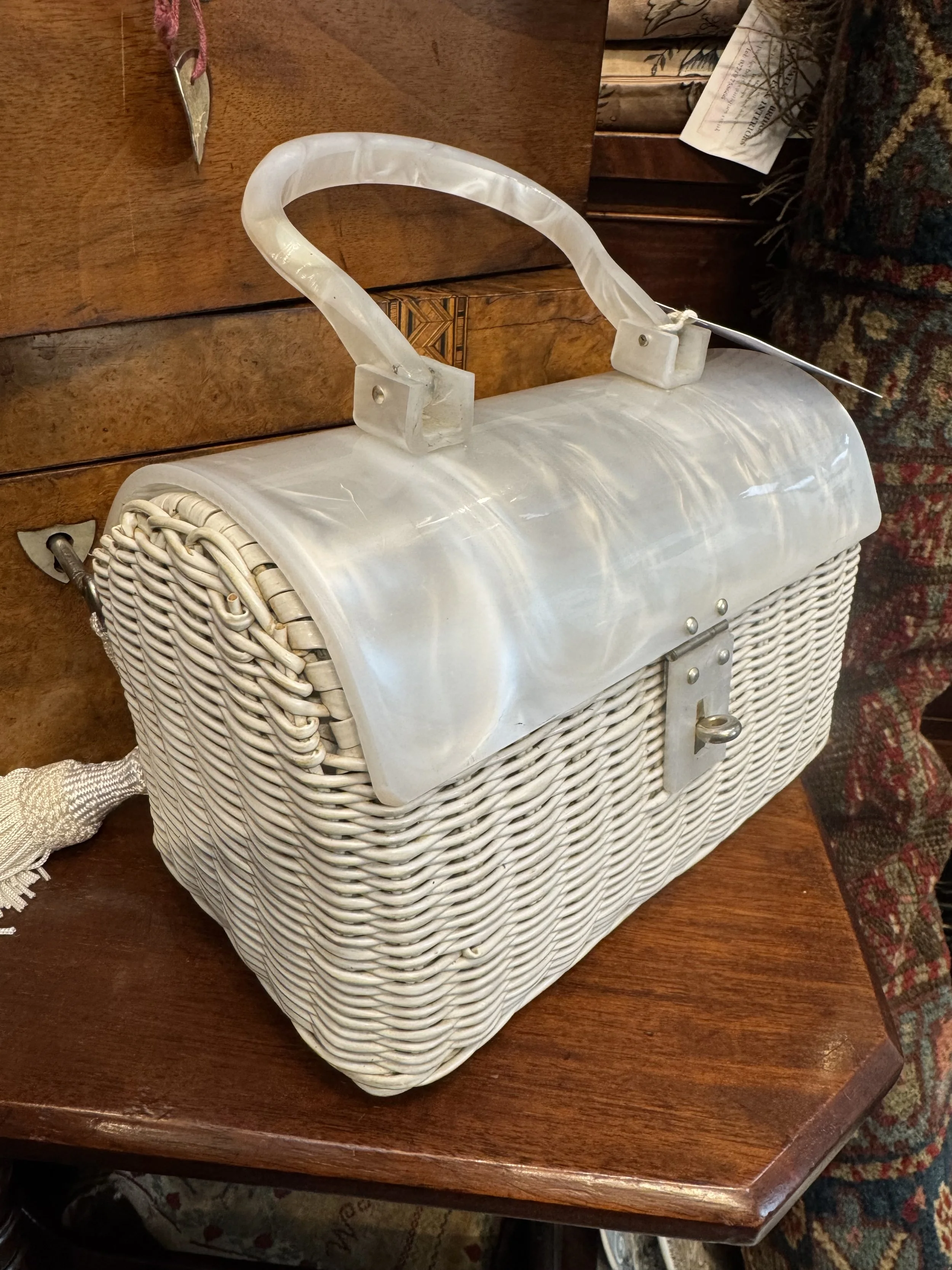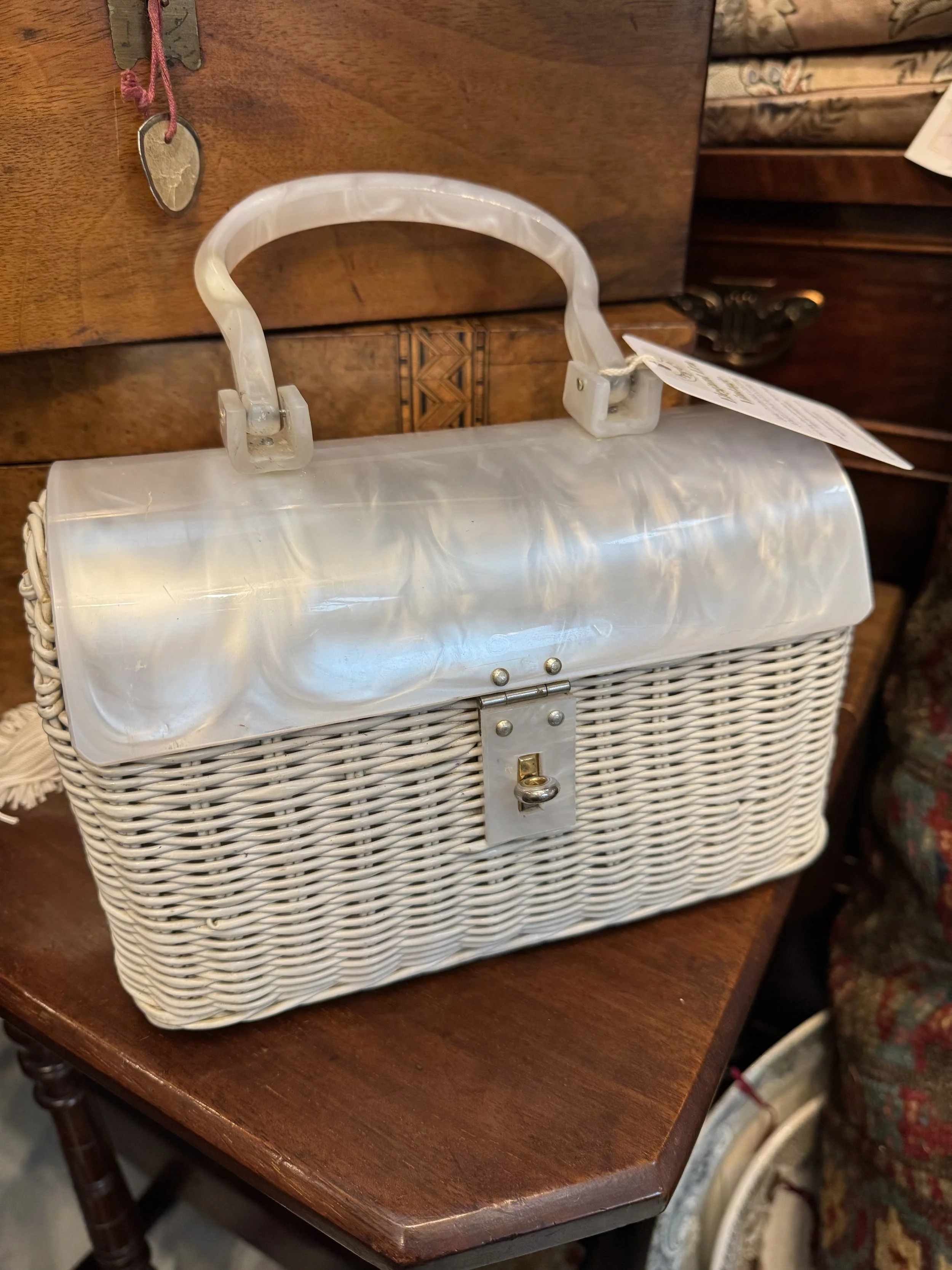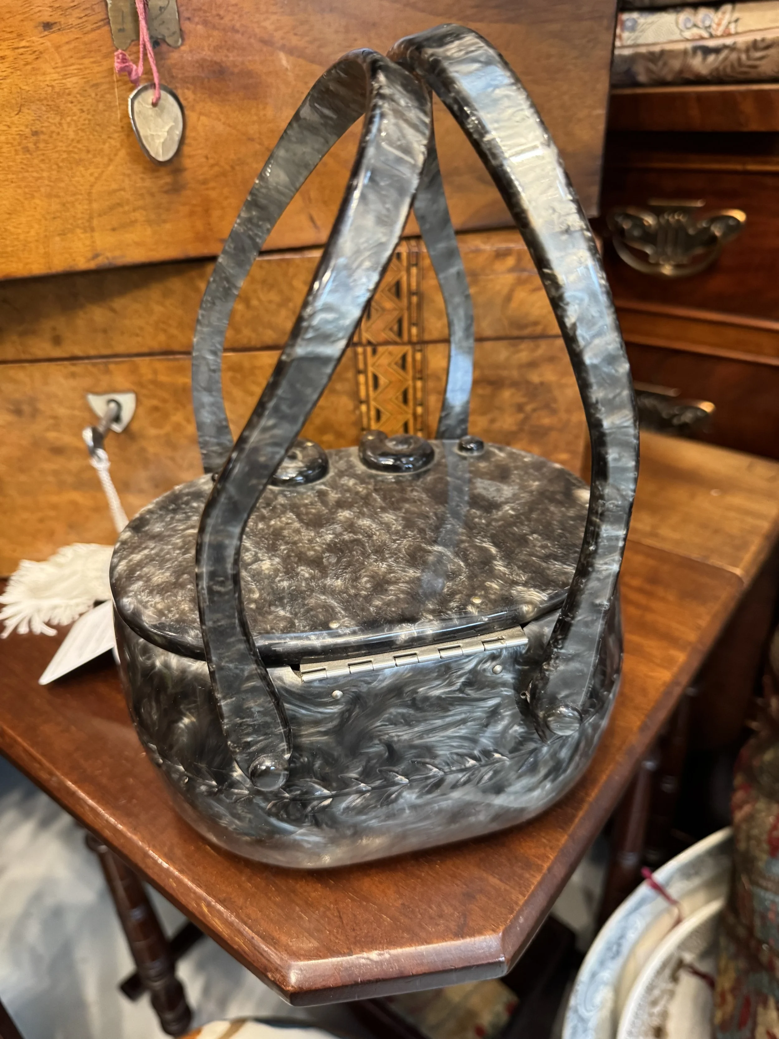 Categories: Select a Category Handbags Handbags 1950s American White Wicker Handbag With Lucite Lid By Marcus Bros American 1950/60s Wicker Box Style Handbag With Poodle Decoration 1940s Large American Black Fan shaped Corde Crochet Handbag With Lucite Handles 1940s Black & White American Telephone Cord Clutch Sold Out 1950s American Novelty Wicker Handbag By Midas Of Miami 1950s Grey Marbled Lucite Handbag By Llewellyn NYC Authentic 1940s London Green Lizard Skin Handbag Set 1940s Vintage Faux Python Skin Vinyl Handbag 1940s Oversized White Crochet Clutch with Matching Coin Purse 1940s American Emerald Green Vinyl Shoulder Bag With Large Crown Motiff 1930s Gold Glass Beaded With Gold Framed Evening Bag 1940s Medium American Black Crochet Beaded Drawstring Bag 1940s American Brown Corde Crochet Handbag With Lucite Handles Sold Out 1940s American Corde Black Handbag With Twisted Lucite Clasp 1940s American Black Corde Handbag 1950s American Clear Lucite With Rhinestones Evening Handbag American 1940s Dark Blue carnival Glass Beaded Evening Handbag Purse 1940s Black British Corde Clutch