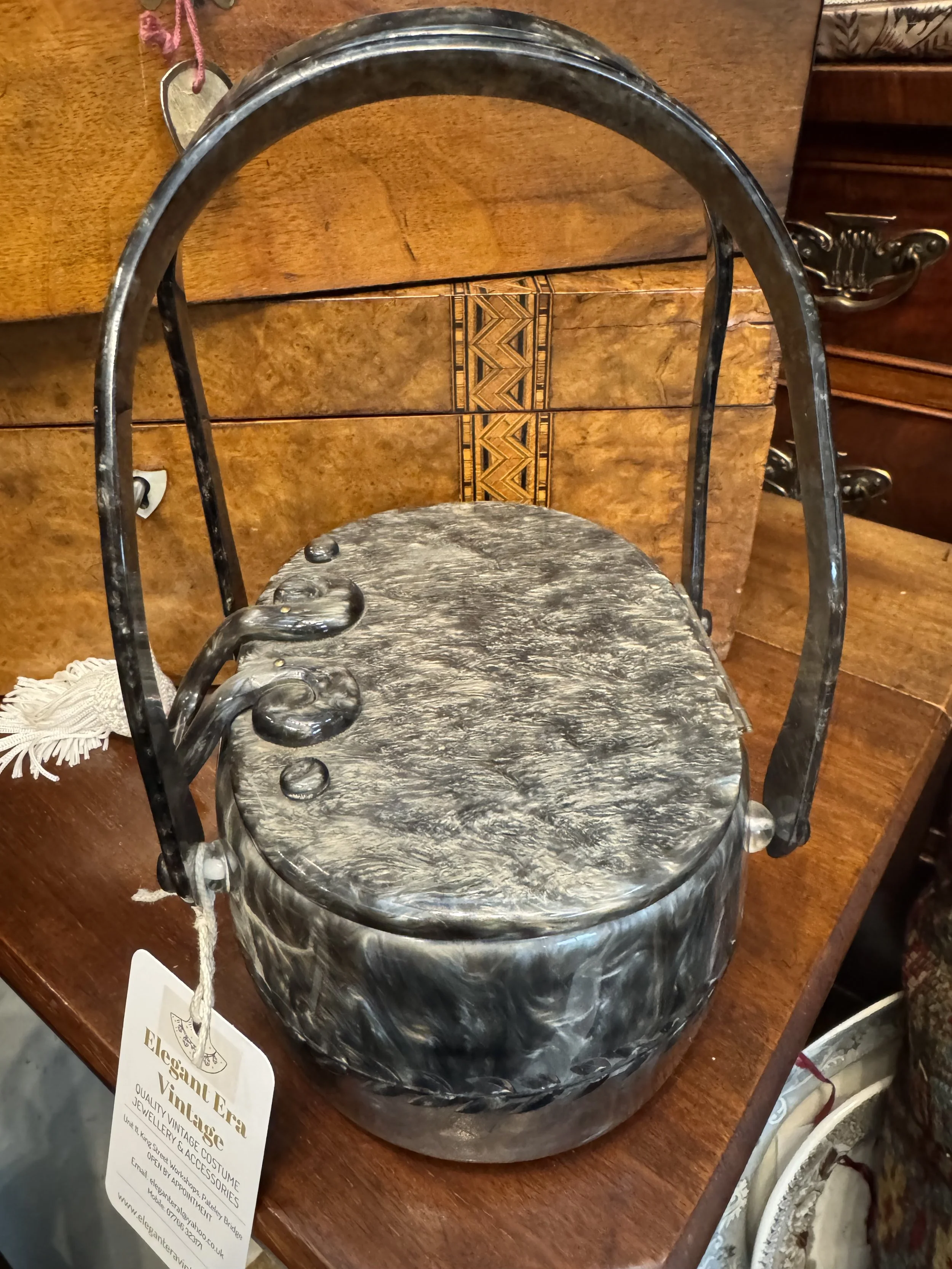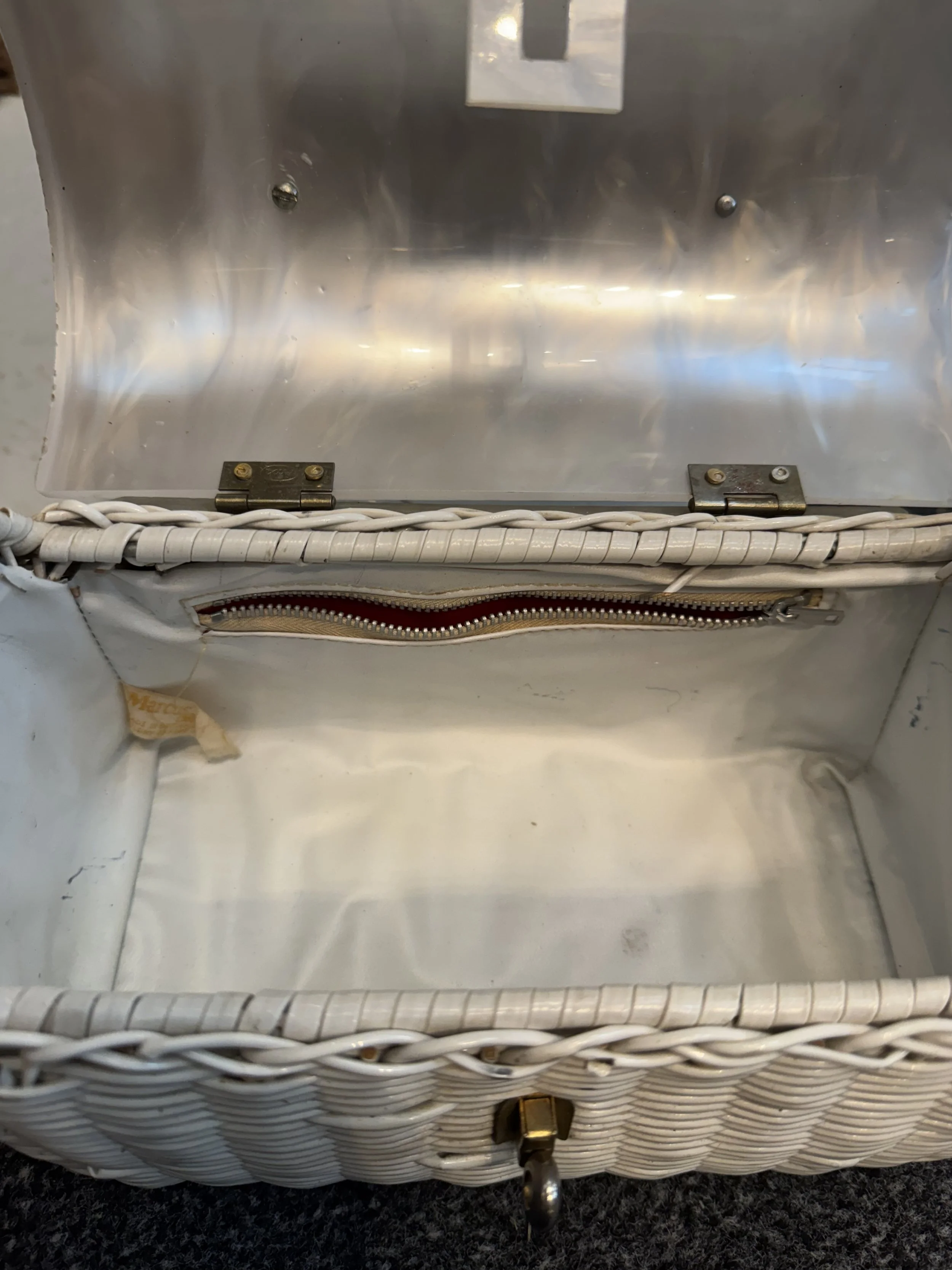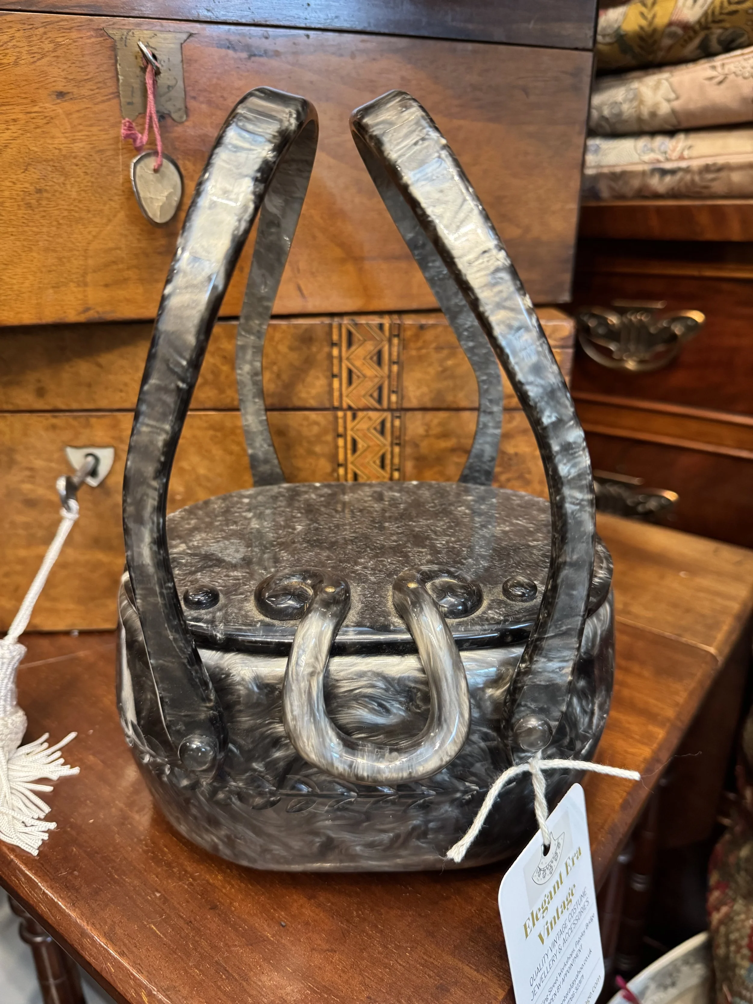 Categories: Select a Category Handbags Handbags 1950s American White Wicker Handbag With Lucite Lid By Marcus Bros American 1950/60s Wicker Box Style Handbag With Poodle Decoration 1940s Large American Black Fan shaped Corde Crochet Handbag With Lucite Handles 1940s Black & White American Telephone Cord Clutch Sold Out 1950s American Novelty Wicker Handbag By Midas Of Miami 1950s Grey Marbled Lucite Handbag By Llewellyn NYC Authentic 1940s London Green Lizard Skin Handbag Set 1940s Vintage Faux Python Skin Vinyl Handbag 1940s Oversized White Crochet Clutch with Matching Coin Purse 1940s American Emerald Green Vinyl Shoulder Bag With Large Crown Motiff 1930s Gold Glass Beaded With Gold Framed Evening Bag 1940s Medium American Black Crochet Beaded Drawstring Bag 1940s American Brown Corde Crochet Handbag With Lucite Handles Sold Out 1940s American Corde Black Handbag With Twisted Lucite Clasp 1940s American Black Corde Handbag 1950s American Clear Lucite With Rhinestones Evening Handbag American 1940s Dark Blue carnival Glass Beaded Evening Handbag Purse 1940s Black British Corde Clutch