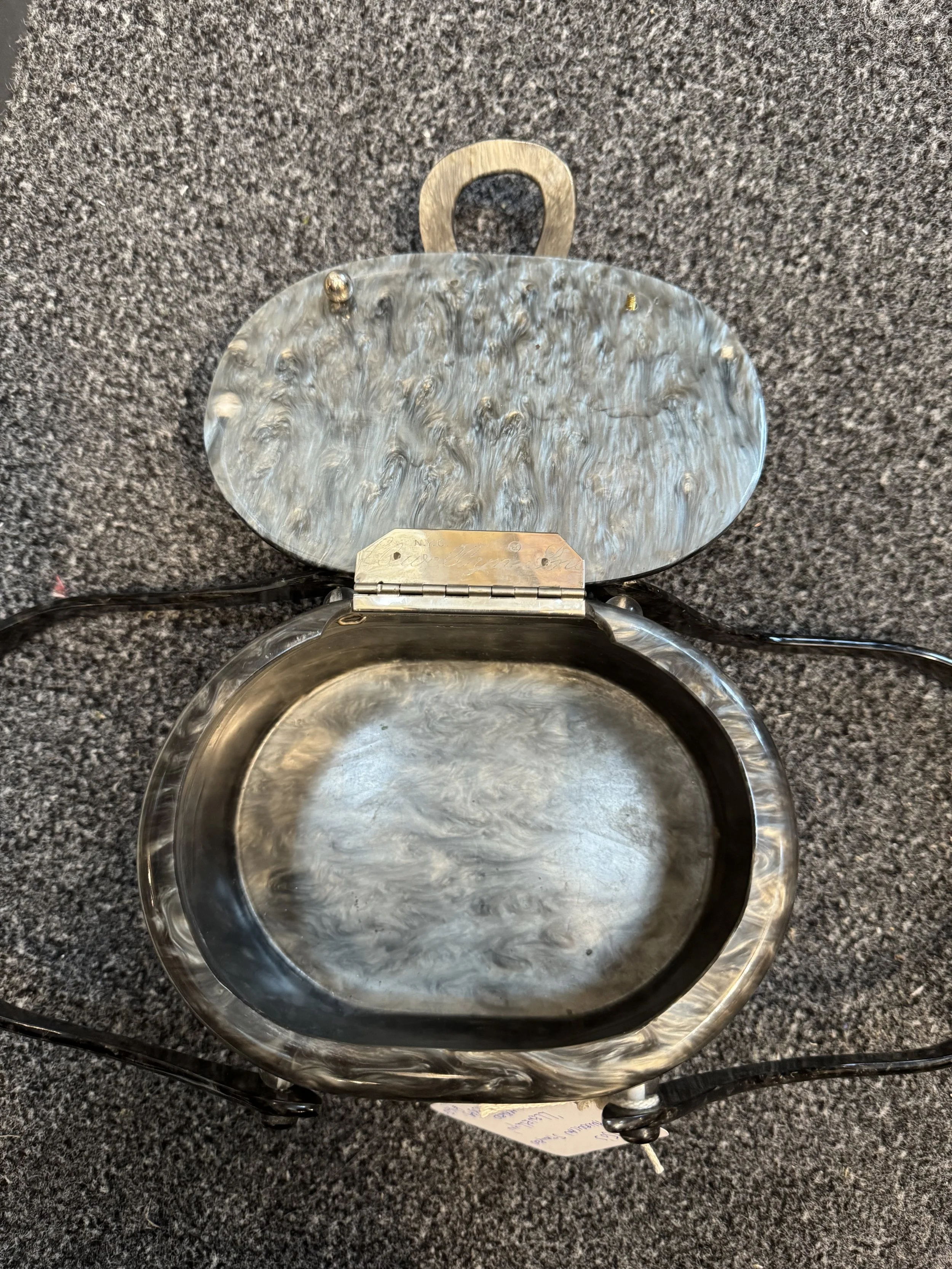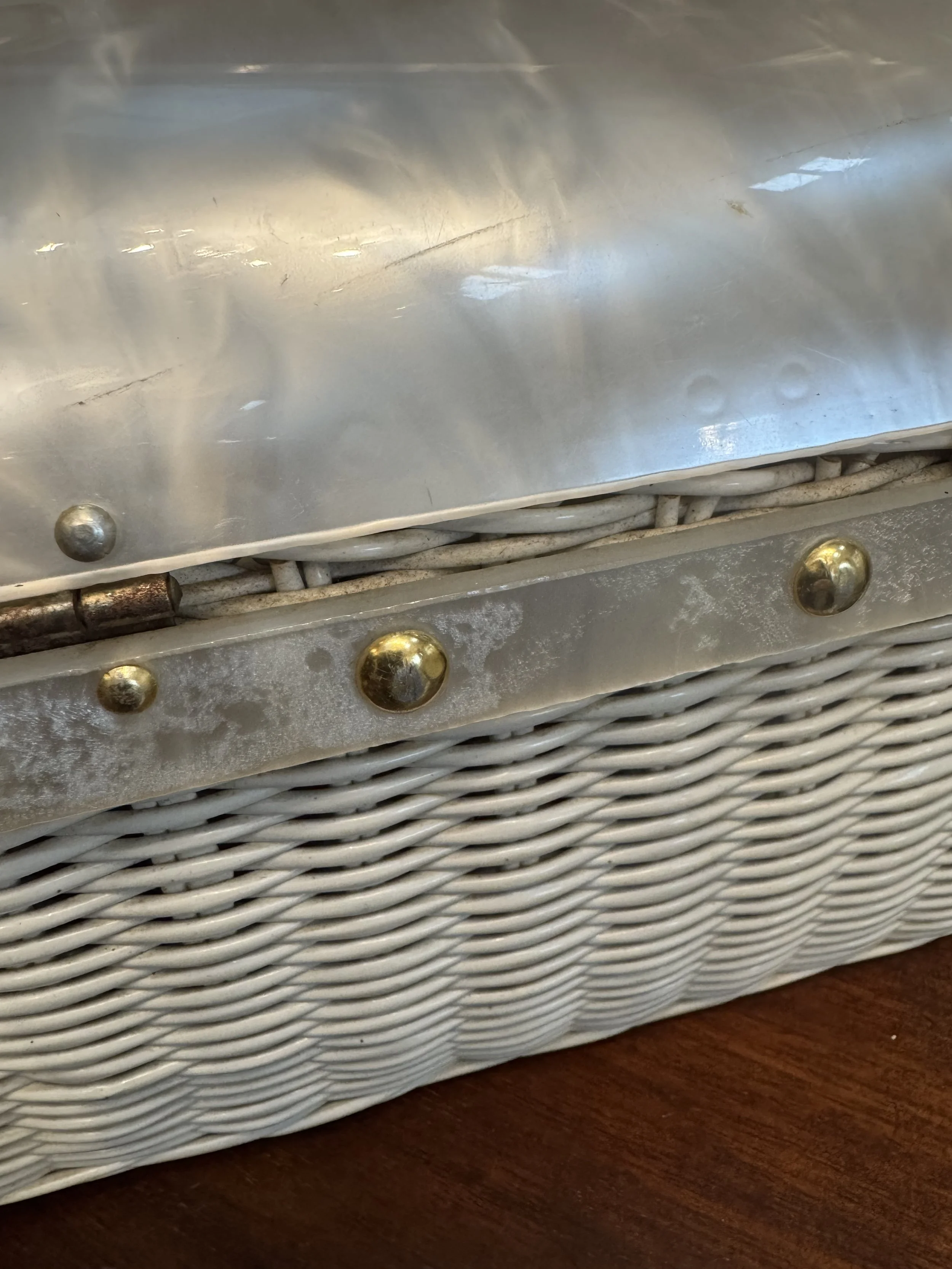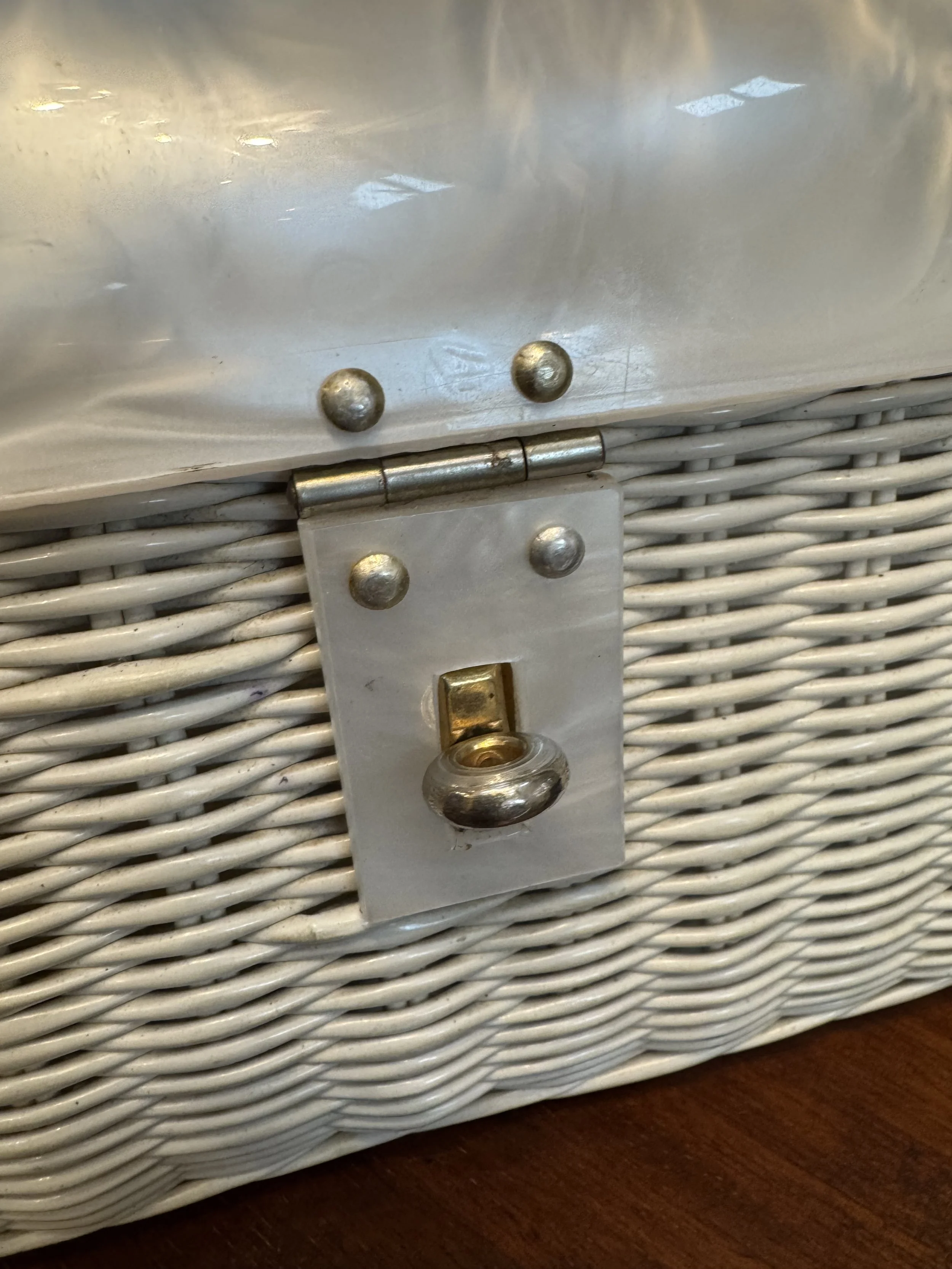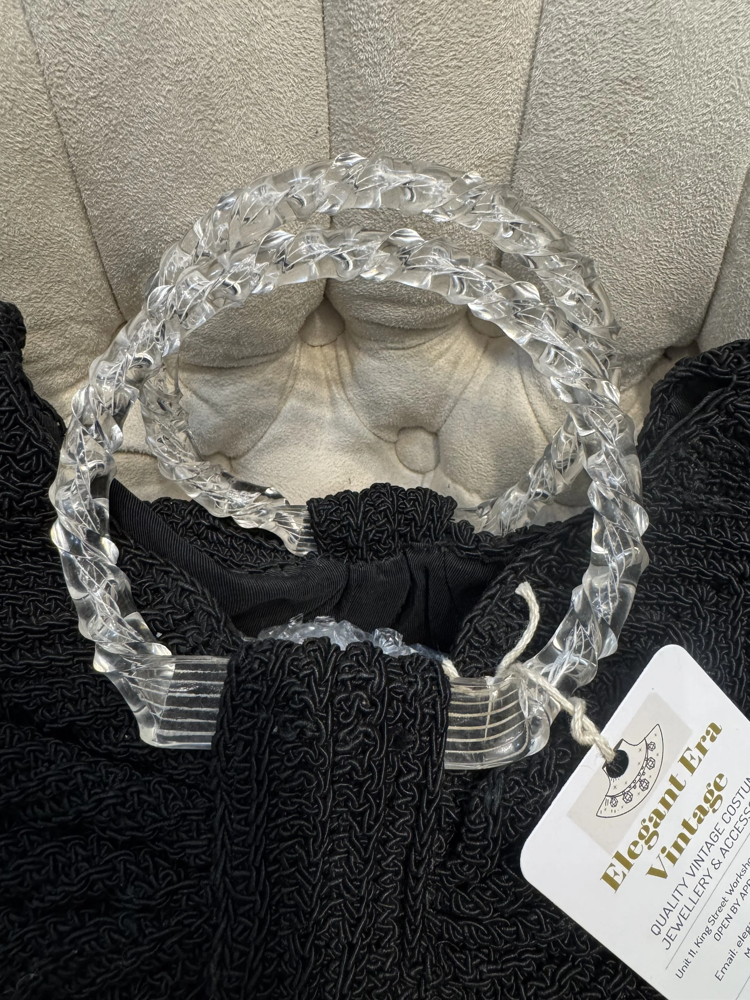 Categories: Select a Category Handbags Handbags 1950s American White Wicker Handbag With Lucite Lid By Marcus Bros American 1950/60s Wicker Box Style Handbag With Poodle Decoration 1940s Large American Black Fan shaped Corde Crochet Handbag With Lucite Handles 1940s Black & White American Telephone Cord Clutch Sold Out 1950s American Novelty Wicker Handbag By Midas Of Miami 1950s Grey Marbled Lucite Handbag By Llewellyn NYC Authentic 1940s London Green Lizard Skin Handbag Set 1940s Vintage Faux Python Skin Vinyl Handbag 1940s Oversized White Crochet Clutch with Matching Coin Purse 1940s American Emerald Green Vinyl Shoulder Bag With Large Crown Motiff 1930s Gold Glass Beaded With Gold Framed Evening Bag 1940s Medium American Black Crochet Beaded Drawstring Bag 1940s American Brown Corde Crochet Handbag With Lucite Handles Sold Out 1940s American Corde Black Handbag With Twisted Lucite Clasp 1940s American Black Corde Handbag 1950s American Clear Lucite With Rhinestones Evening Handbag American 1940s Dark Blue carnival Glass Beaded Evening Handbag Purse 1940s Black British Corde Clutch